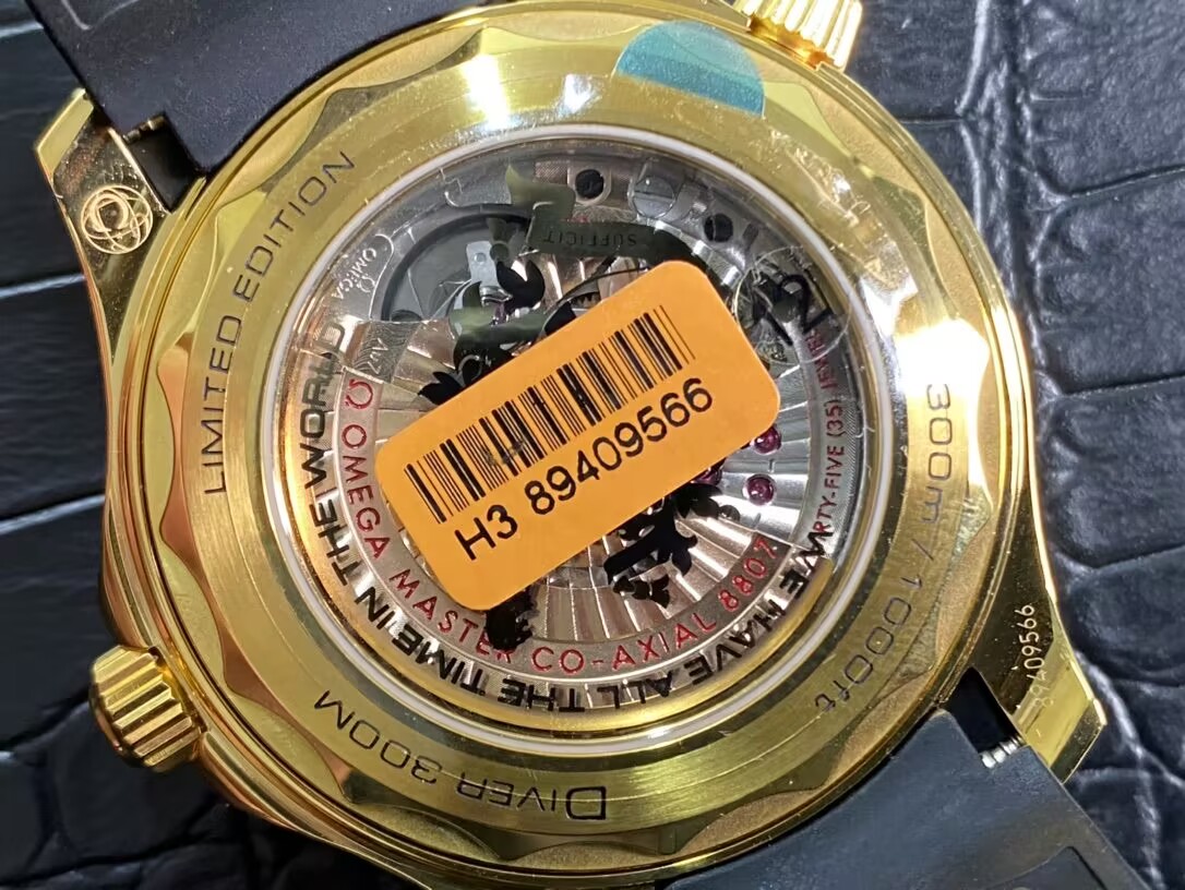 Be the first to review “Golden Omega model watch, paired with black silicon strap”