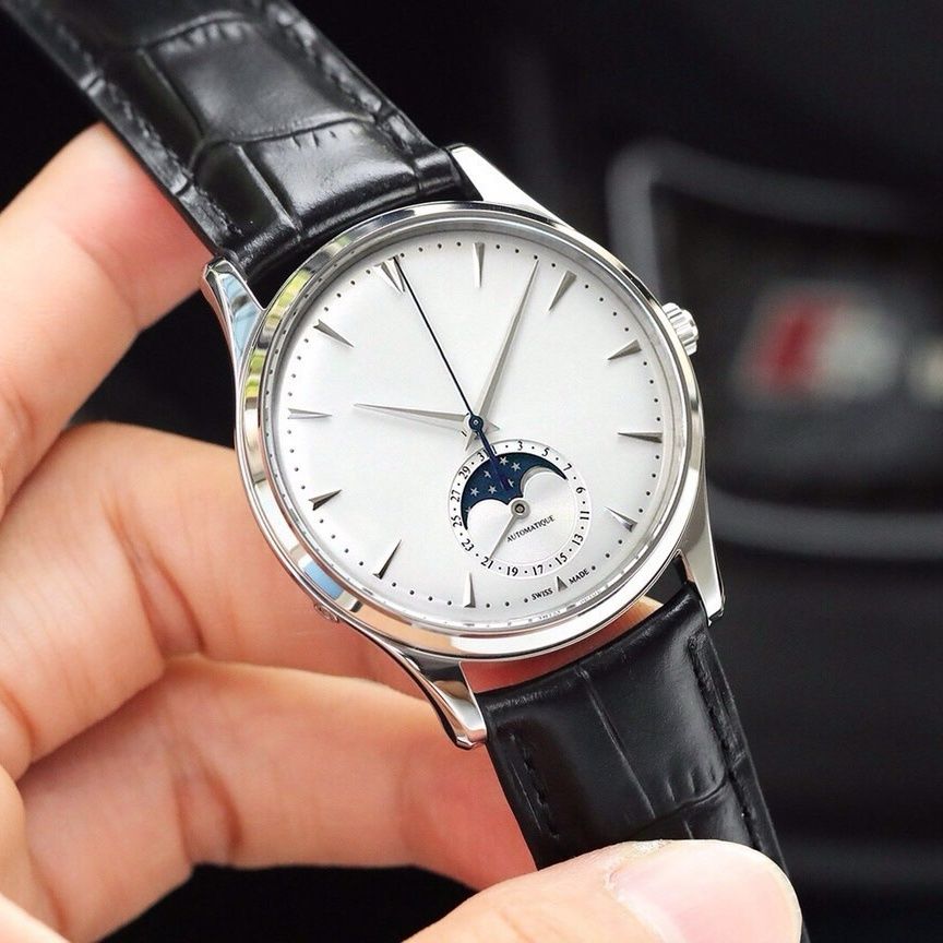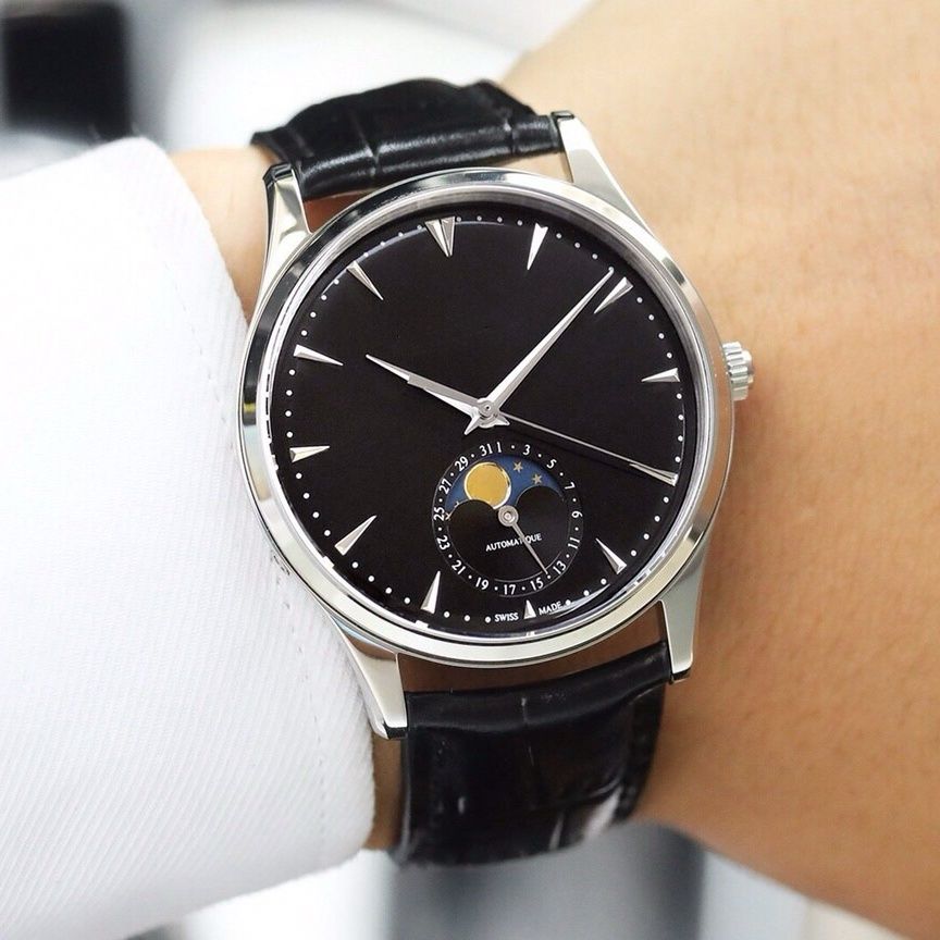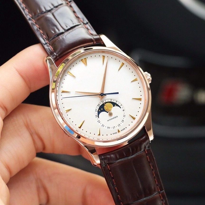 New Moon Phase Master Men’s Quartz Watch with Moon Phase Function without Calendar Leather Strap Business Trend Watch for Men.