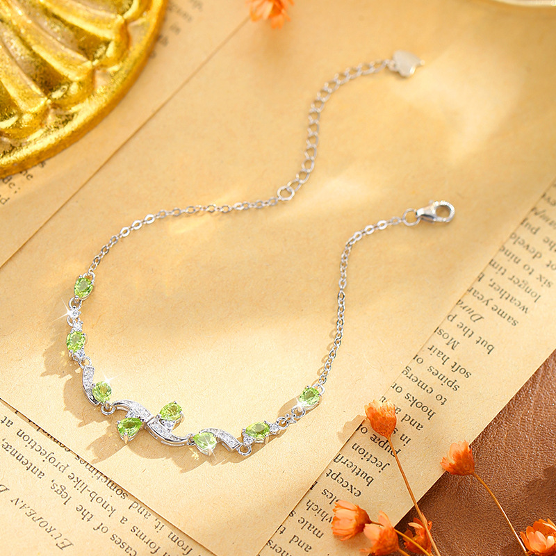 S925 Sterling Silver Bracelet, Pear Shape Peridot Topaz Crystal, Luxury Gemstone Jewelry, Elegant Women Fashion Accessory